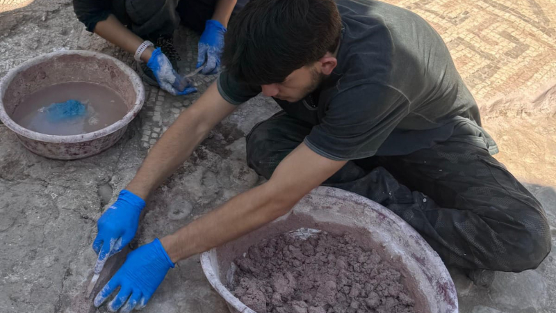 Antalya Belek Üniversitesi Mimari Restorasyon Program Başkanı Dr. Öğr. Üyesi Halil Mert Erdoğan, yaz stajlarını Olympos Antik Kenti’nde gerçekleştiren öğrenciler Serdar Uçar, Efe Atan ve Sevgi Çetin ile birlikte 1 No’lu Kilise’de keşfedilen yazıtlı taban mozaiğinin restorasyon çalışmalarında aktif görev aldı. Üniversite ekibi, mozaiğin özellikle yazıt içeren bölümünün korunmasına yönelik titiz bir çalışma yürüttü.