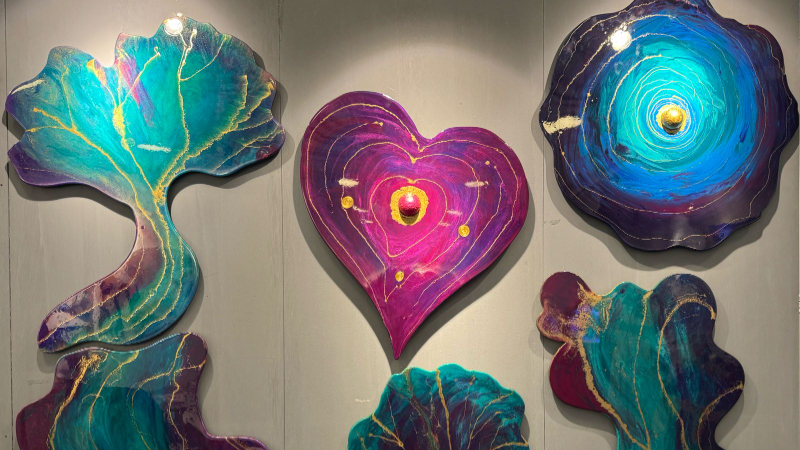“Zamanın Ötesinde”, zamanı ölçülen bir kavram olarak değil; katmanlar, dokular ve ışık aracılığıyla hissedilen bir deneyim olarak ele alan yaklaşımıyla öne çıktı. Saraçoğulları’nın epoksi, pigment ve doğal malzemeleri bir araya getirdiği eserleri, izleyiciyi belirli bir anlatıya yönlendirmekten ziyade kişisel bir iç okuma alanı açmayı amaçladı.