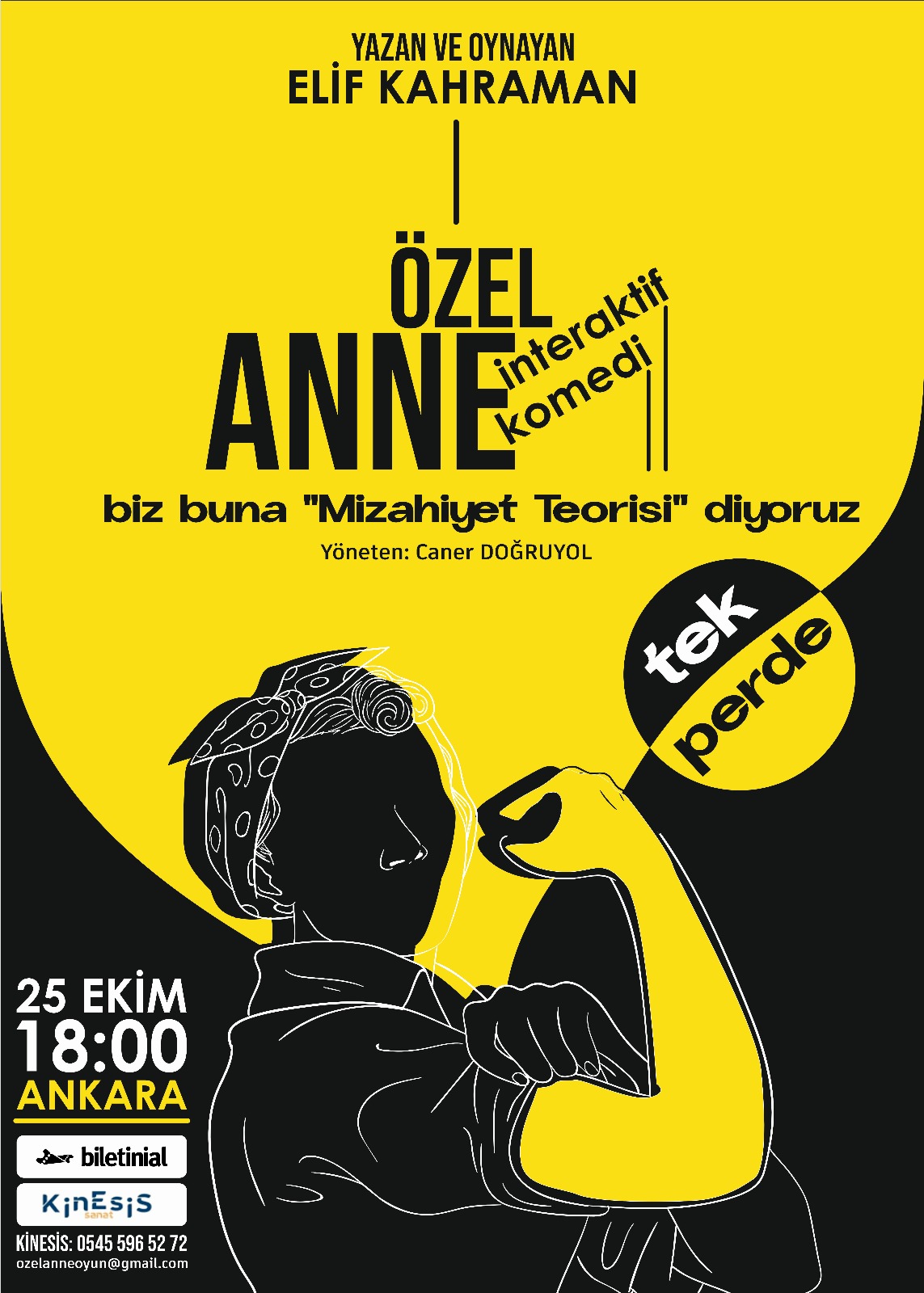 Anneliğin görünmeyen yüklerini, toplumun dayattığı rollerle mücadeleyi ve bir kadının içsel direncini konu alan “Özel Anne” adlı tek kişilik oyun, Elif Karahan tarafından yazıldı ve sahnede yine onun yorumuyla hayat buluyor.