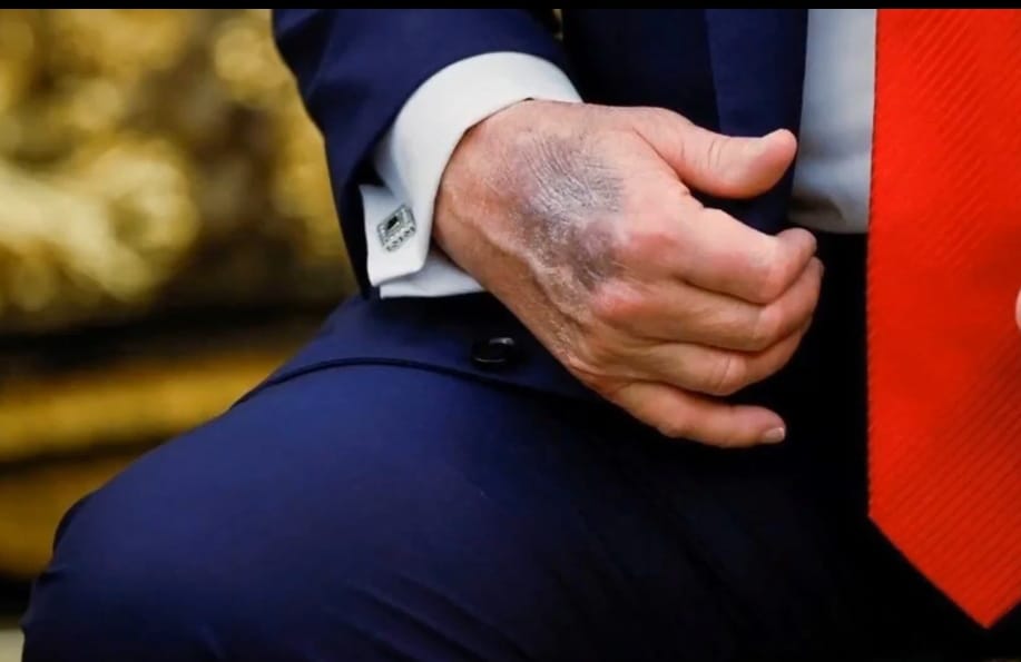 ABD Başkanı Donald Trump’ın Oval Ofis’te elinde fark edilen koyu morluk, kamuoyunda sağlık tartışmalarını yeniden alevlendirdi.